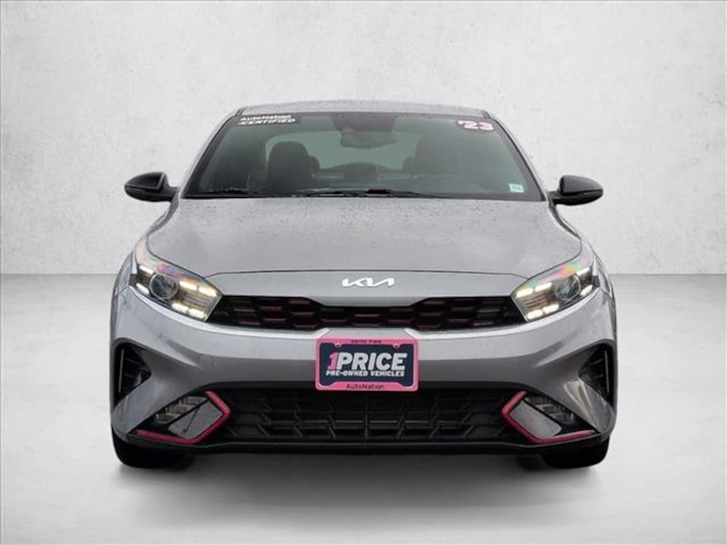 2023 Kia Forte GTLine Sporty Style Meets Everyday Value The 2023 Kia Forte GTLine delivers eyecatching style and smart technology in a compact sedan thats ready for daily life. With athletic GTLine body styling, bold 17inch alloy wheels , and LED daytime running lights and fog lamps, it stands out from the crowd. Inside, a large 10.25inch touchscreen with navigation, Kia Connect and SiriusXM keeps you connected, while Apple CarPlay and Android Auto integration ensures seamless smartphone access. The GTLines interior welcomes you with sportinspired seats trimmed in SynTex and cloth, a leatherwrapped flatbottom steering wheel, and dualzone automatic climate control for comfort on every drive. Standard safety technology includes blindspot detection and rear crosstraffic collision avoidance, while pushbutton start with a Smart Key adds convenience. Efficient performance comes from the 2.0L 4cylinder engine paired with an Intelligent Variable Transmission, giving confident power with great fuel economy designed for everyday driving. Whether youre commuting, cruising, or heading out for weekend adventures, the 2023 Kia Forte GTLine blends style, tech, and practicality into one compelling package.